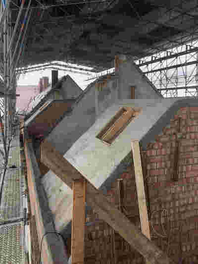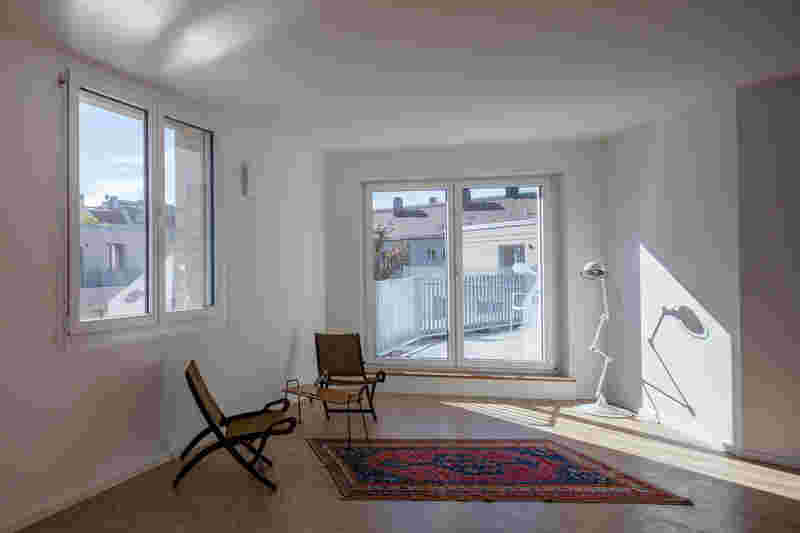The two structures each house two houses. These are organised as 3 and 4 spans. The third new building in the courtyard is located on the fire wall in the south and will be used as a children's house.