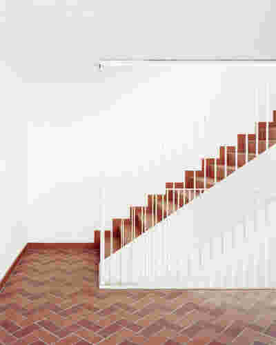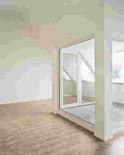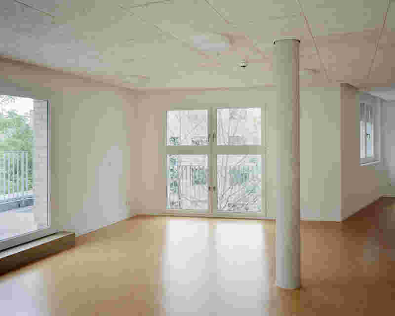 The design of the double-skin masonry buildings is developed from the surrounding buildings. The light-coloured masonry façades of the new buildings are based on the colours of the existing residential buildings and their structure and materiality on the clinker bricks of the church. Windows and sun protection are slightly different on the two structures - so one finds three independently behaving individuals in the courtyard.