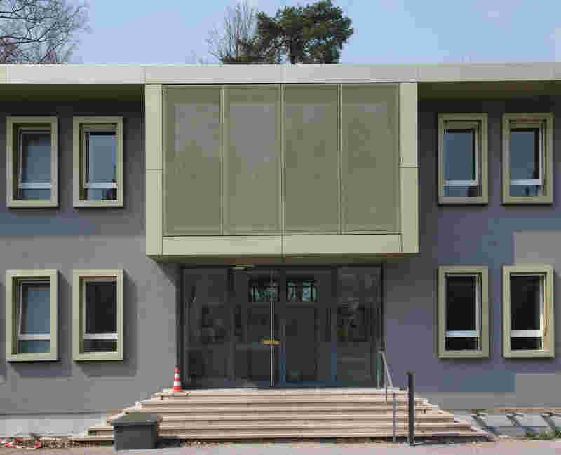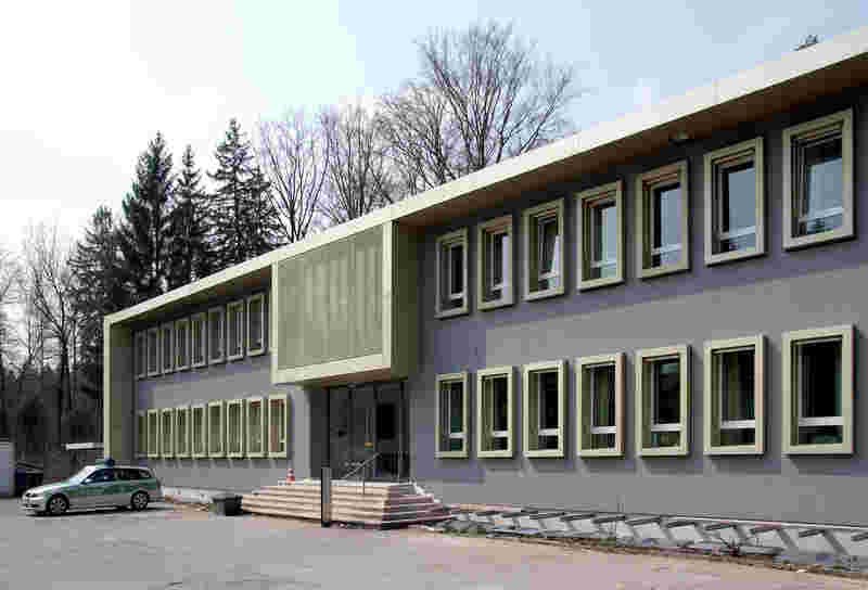The police station in Grünwald, located in a former administrative building built in 1953, is situated on the main road of the community. The task was to renovate the building's energy efficiency, redesign the entrance situation and landscape the surrounding gardens.