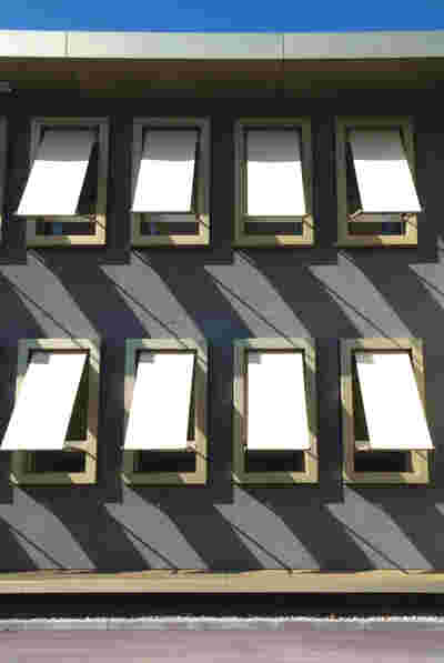 In the course of the renovation of the façade, the strict axis-symmetrical order is emphasised by a pronounced relief effect. The installation of metal window boxes, which also accommodate the new, exterior sun protection, and a surrounding frieze made of golden anodised aluminium will again enhance the public building.