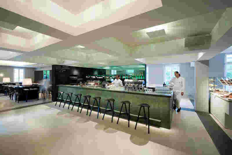 As a significant spatial change, the area that reflects the Orangerie-theme was opened up towards the restaurant. The restrooms were relocated to the basement, thus requiring a new staircase. The restaurant’s encirclement of the riding arena is now much more pronounced, new views have been opened up.