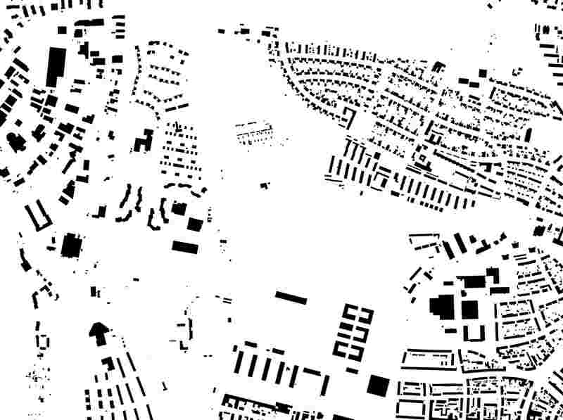 Consequently, underground car parks are dispensed with altogether. Close to the existing units, a flexible-use neighbourhood garage within easy walking distance of all parts of the quarter, together with the public transport stop, creates a mobility hub. Temporary parking for fans at weekends alternates here with communal uses of the market hall and covered sports areas.