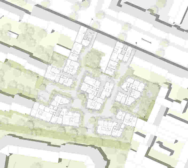 Maxvorstadt is characterised by a strong polarity of busy street spaces and private courtyard situations. The different locations "on the street" and "in the courtyard" are further developed as a characteristic of urban living in the form of "interlocking courtyards" as continuous, communal urban spaces.
