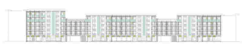 The three residential courtyards of Stadtbau-GmbH Regensburg are centrally located directly adjacent to this park and will be the first new buildings in the neighbourhood. They will have a decisive influence on the scale and atmosphere of the neighbourhood in terms of its goals. The opportunity and task is therefore to develop a convincing social, architectural and open-space interpretation of the model project, in which the innovative technical themes fit in as naturally as possible. The block structure in the draft development plan opens up to the neighbouring courtyard or park at certain points. The spatial guidance through the openings was strengthened by emphasising the ends in order to simultaneously increase the potential of flats with three-sided lighting at these points. The openings in MU2 and MU8 were placed at the seven-storey high points; in MU4, the south-eastern development jumps to the park side. Overall, the building depths and heights attempt to shift floor space away from the streets and towards the neighbourhood park.