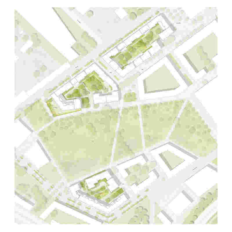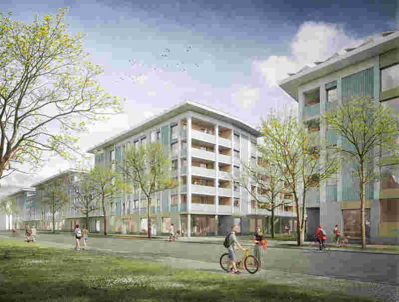The urban development concept for the new district on the site of the former Prinz Leopold barracks in Regensburg by ISSS research Architekten and Bauchplan Landschaftsarchitekten envisages a classic, space-creating urban structure. The quarter is conceived as a social and ecological model project that is also intended to reduce parking spaces and minimise underground garages with new mobility concepts and neighbourhood garages. The central element is a diagonally running neighbourhood park that connects to existing green structures to the north and south.