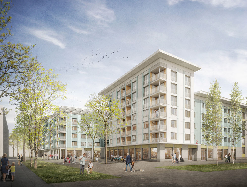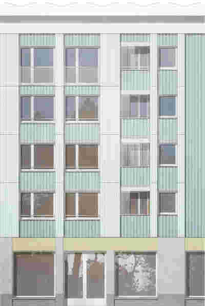 The combination of a load-bearing reinforced concrete structure and highly insulated, prefabricated exterior walls in timber frame construction creates economical, sustainable buildings with a minimised CO2 balance. The façade areas in timber frame construction receive rear-ventilated cladding made of recycled aluminium, while the ground floors are finished in mineral reinforced concrete or plastered.