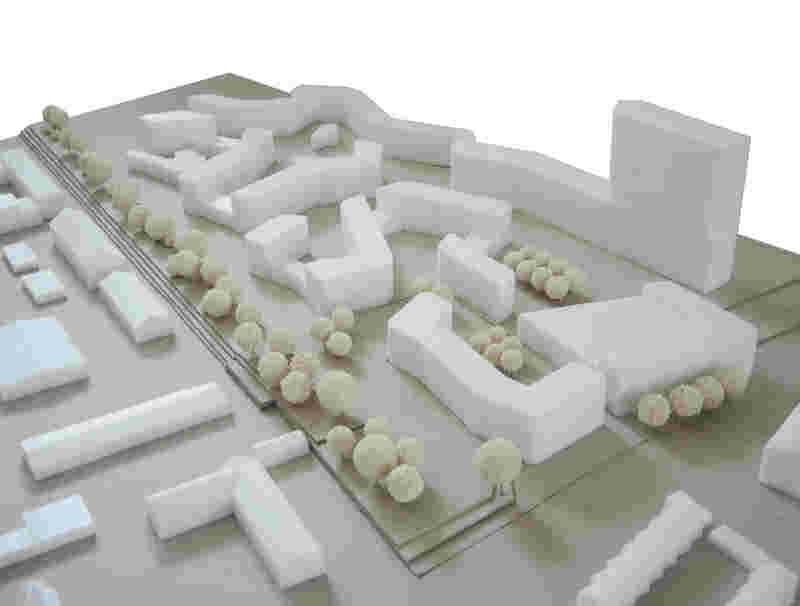 Die Vernetzung der neuen Bebauung mit der Nachbarschaft und den bestehenden oder neuen öffentlichen Räumen ist über die Passage an der Kita in den Freiraum des Bahndammes und den Durchgang am Aldi gewährleistet.