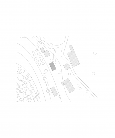 In Materialwahl und Bauweise orientiert sich das Haus an ortstypischen Merkmalen. Das offene Erdgeschoss bildet in verputztem Mauerwerk den Sockel auf dem in dunkel lasiertem Holz das kompakt-geschlossene Obergeschoss mit seinem ungleichschenkligem Satteldach ruht.