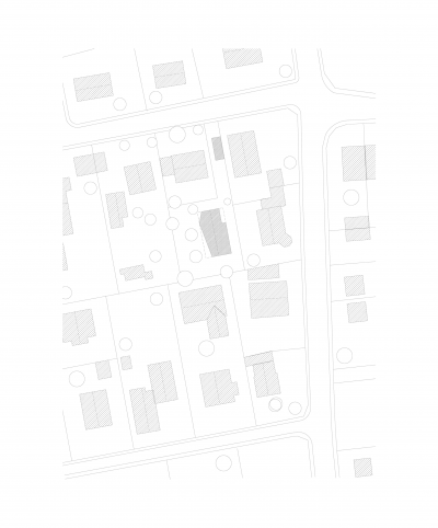 Das Einfamilienhaus steht in zweiter Reihe mitten im ehemaligen Obstgarten des Vorderhausen in einer Nachkriegssiedlung in Haimhausen. Die bestehende kleinteilige Parzellenstruktur wurde in den letzten Jahren mit Einfamilienhäusern nachverdichtet.
