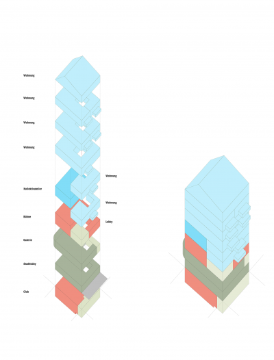 Der vorliegende Vorschlag erweitert das Kulturell geprägte Programm in Richtung kollektiver Wohnmodelle für Neue Münchner, seien es Gäste, Studierende, Künstler, oder Geflüchtete. Die aktuellen Herausforderungen in der Stadt bieten hierbei eine große Chance, bekannte Akteure mit eingeführten Konzepten zur transkulturellen Interaktion mit der Idee des neuen Zuhauses der Ankommenden zu verbinden. Dabei liefern kleinere Projekte mit wenigen forschenden Typologien des Wohnens einen wichtigen Beitrag, der in der schieren Masse der bestehenden Aufgabe nicht untergehen darf.