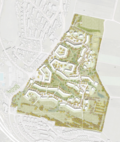 Die ehemalige Alfred – Delp - Kaserne soll zu einem neuen Stück Donauwörth werden, ein Stück Stadt mit starker Identität an der Schnittstelle zwischen Besiedlung und Landschaft. Das neue Quartier vernetzt sich mit der Stadt und definiert den Ortsrand und den Übergang zur Landschaft neu. Möglichst viele der angebotenen Wohnformen sollen das Gefühl des Wohnens im freistehenden Einfamilienhaus vermitteln bei gleichzeitig sparsamen Fläschenverbrauch. Es entstehen dichtere, klar definierte, unterschiedliche und abwechslungsreiche Räume (und Orte) mit hohen Aufenthaltsqualtitäten. Das Projekt folgt konsequent der bestehenden Topographie und ordnet jeweils Wohnungstypologien nach Lagegunst an.